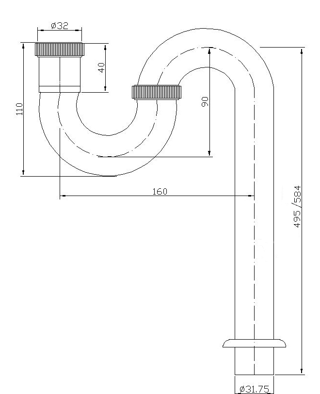 铜镀铬丝口S型面盆排水管