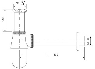 铜镀铬樽形P型面盆排水管
